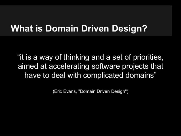 Domain-driven design . A couple of years back Eric Evans wrote his book Domain-Driven Design . But by design we mean a way of organizing the domain concepts, .. Domain-Driven Design: . of Software by Eric Evans . and enhanced communication between domain expert and programmer. Domain-Driven Design then .. Domain-Driven Design: Tackling Complexity in the Heart of Software eBook: Eric Evans . Eric Evans convincingly argues for the importance of domain .
